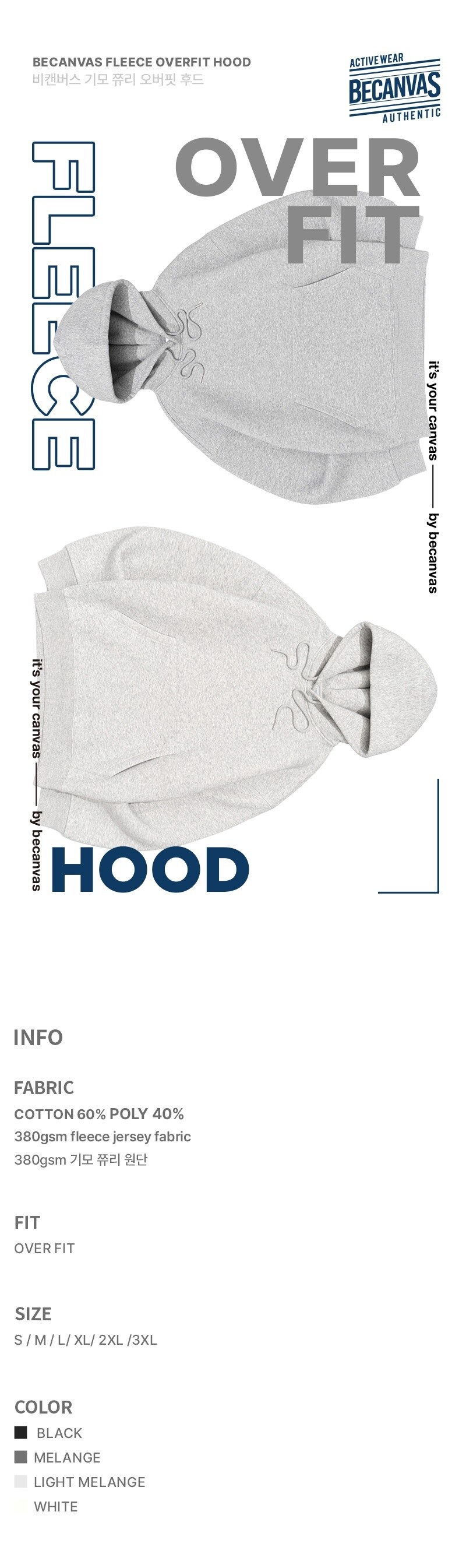 비캔버스 쭈리기모 오버핏 후드