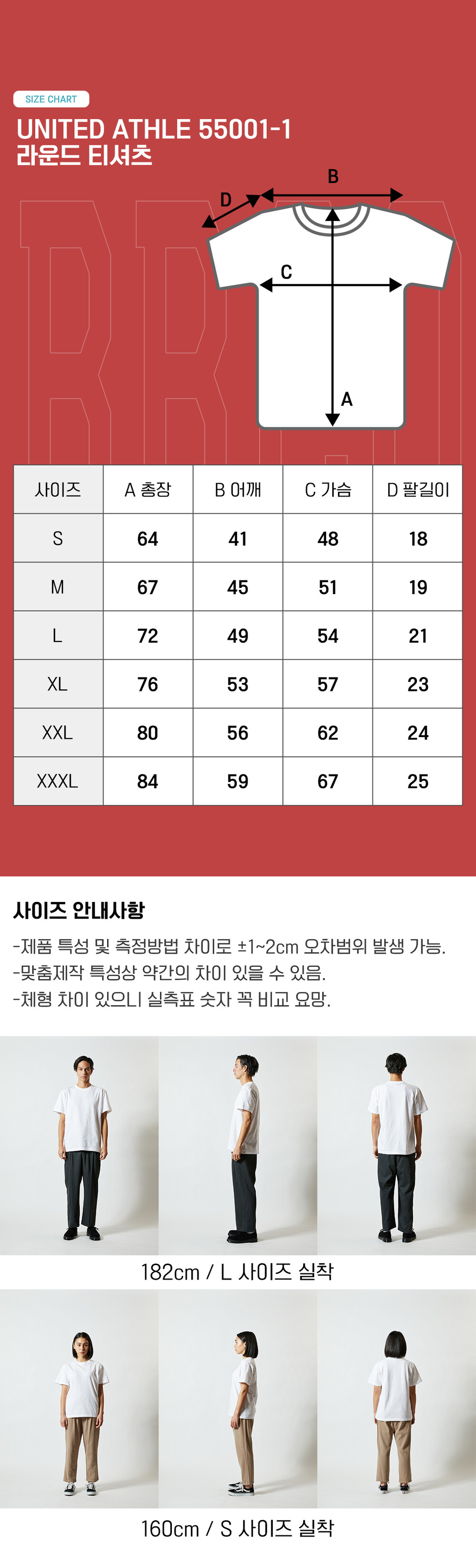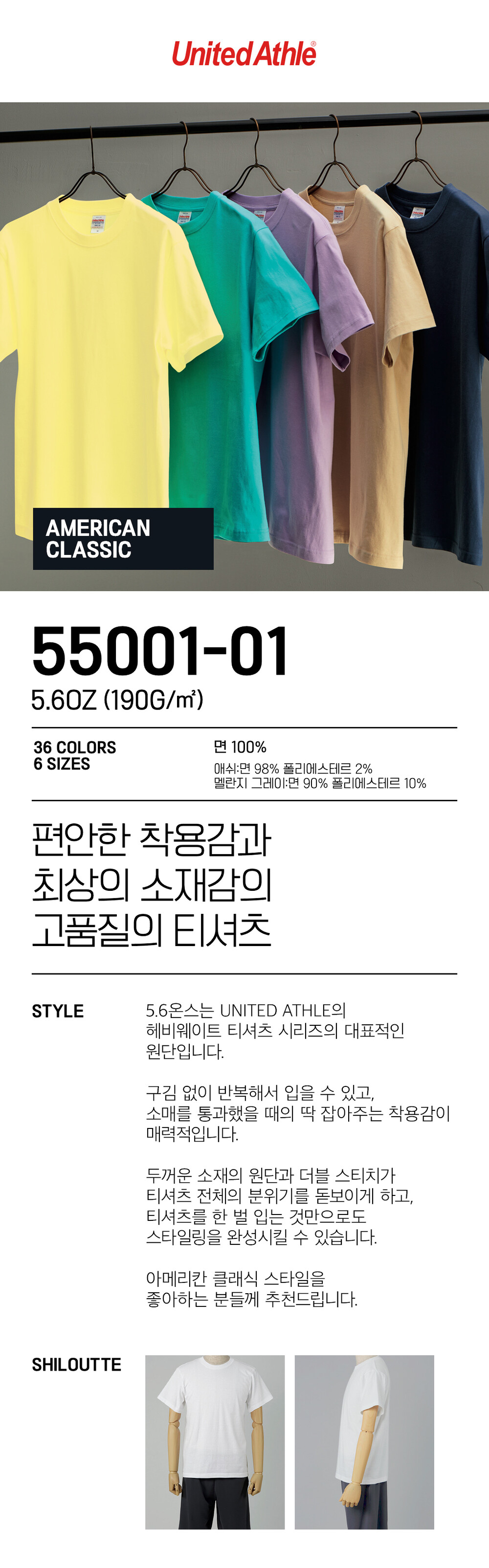 유나이티드 애슬 [레귤러핏] 55001 5.6oz (190g/㎡)
