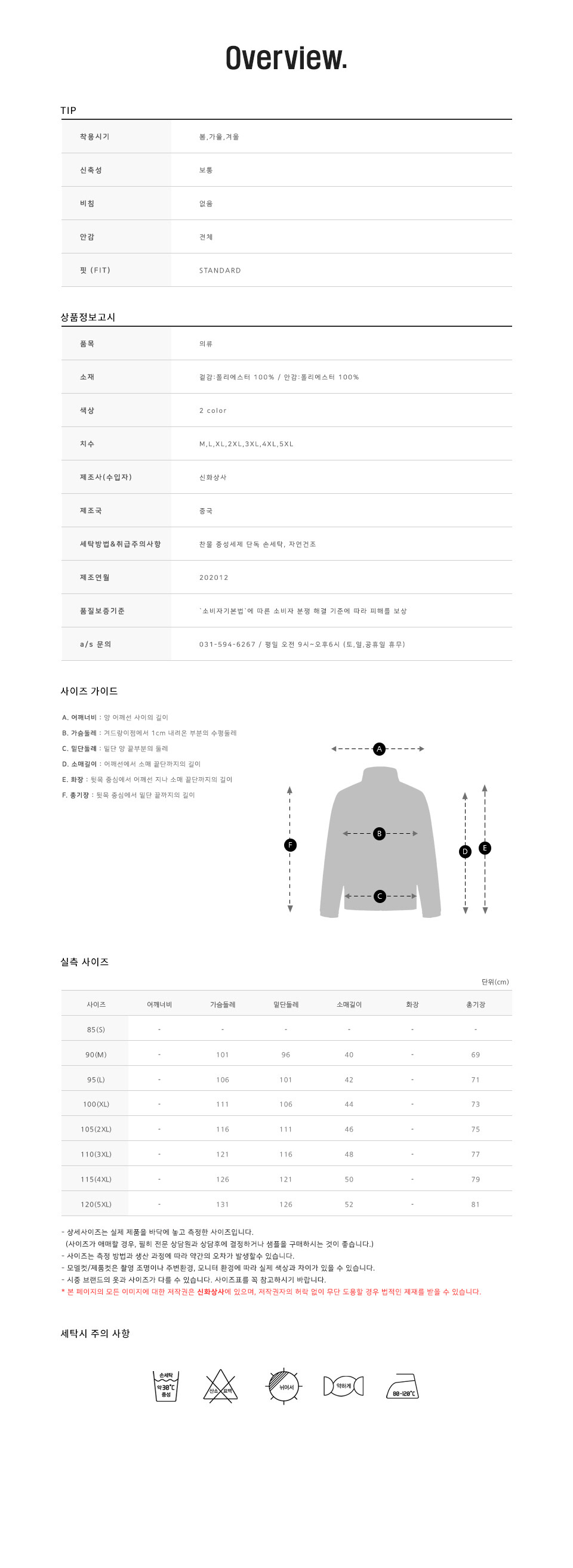 사이즈 [ S, M, L, XL, XXL 제작가능 ]