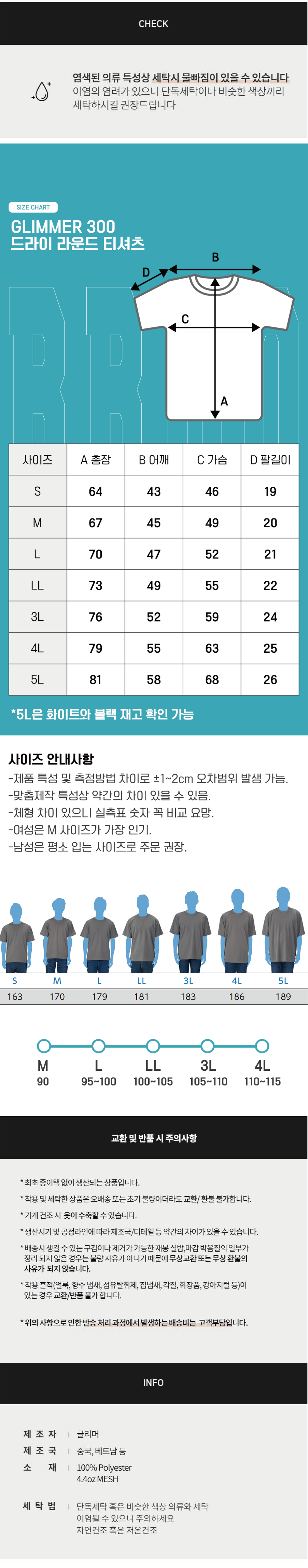 사이즈 [ S,M,L,LL,3L 제작가능/특대별도문의 ]